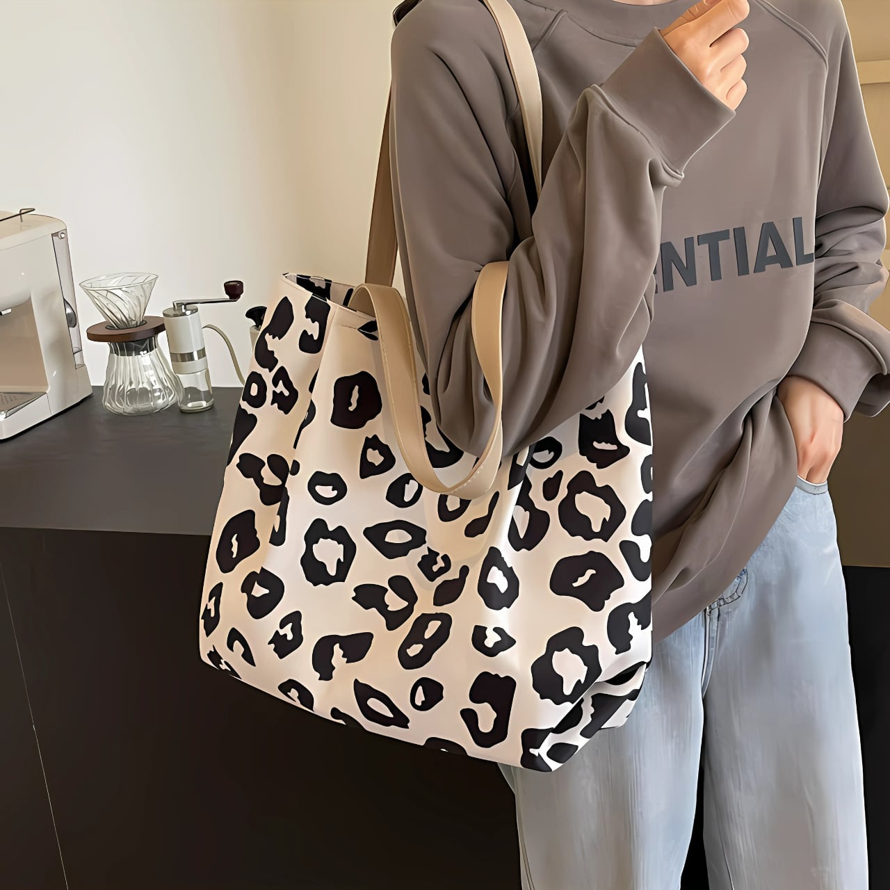 【一目惚れ】通勤・通学に ヒョウ柄を楽しむ。毎日にちょうどいいキャンバストートバッグ 【International Shipping via Proxy Service】